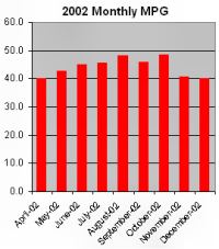 | 2002 Avg. $/Gal.: $1.452 | 3/30/02-12/17/02 Lifetime MPG: 43.6 |